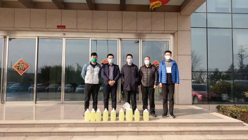 市派工作組組長、市人防辦黨組成員、副主任高杰同志等一行五人進駐公司開始辦公,并為公司帶來消毒液等防疫物資