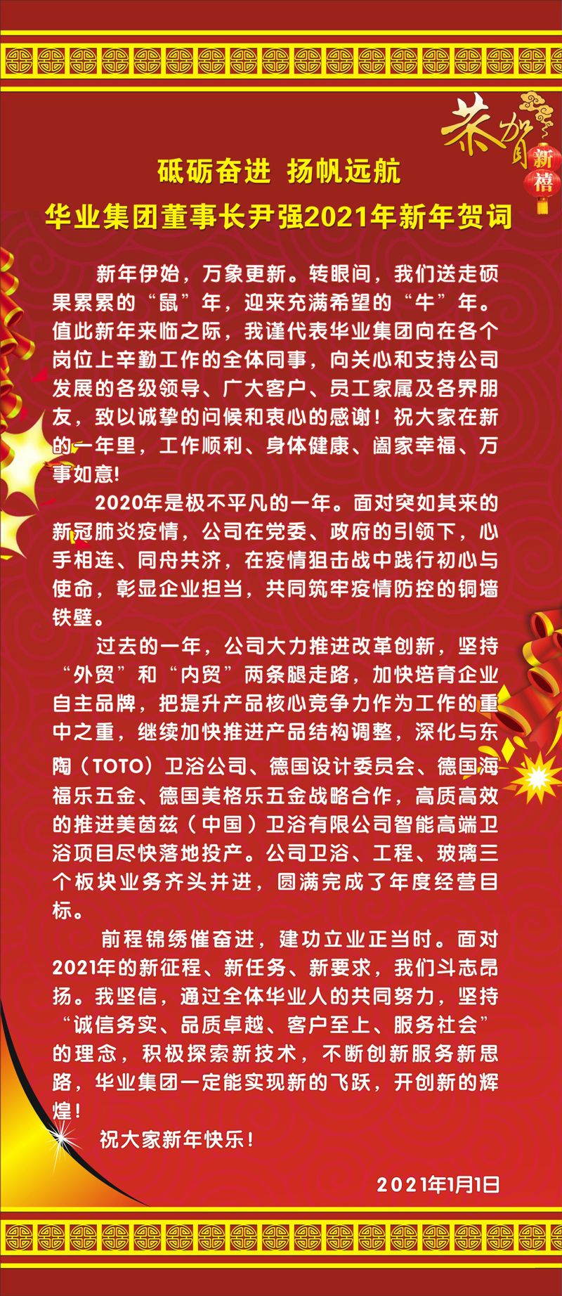 砥礪奮進(jìn) 揚(yáng)帆遠(yuǎn)航丨華業(yè)集團(tuán)董事長(zhǎng)尹強(qiáng)2021年新年賀詞